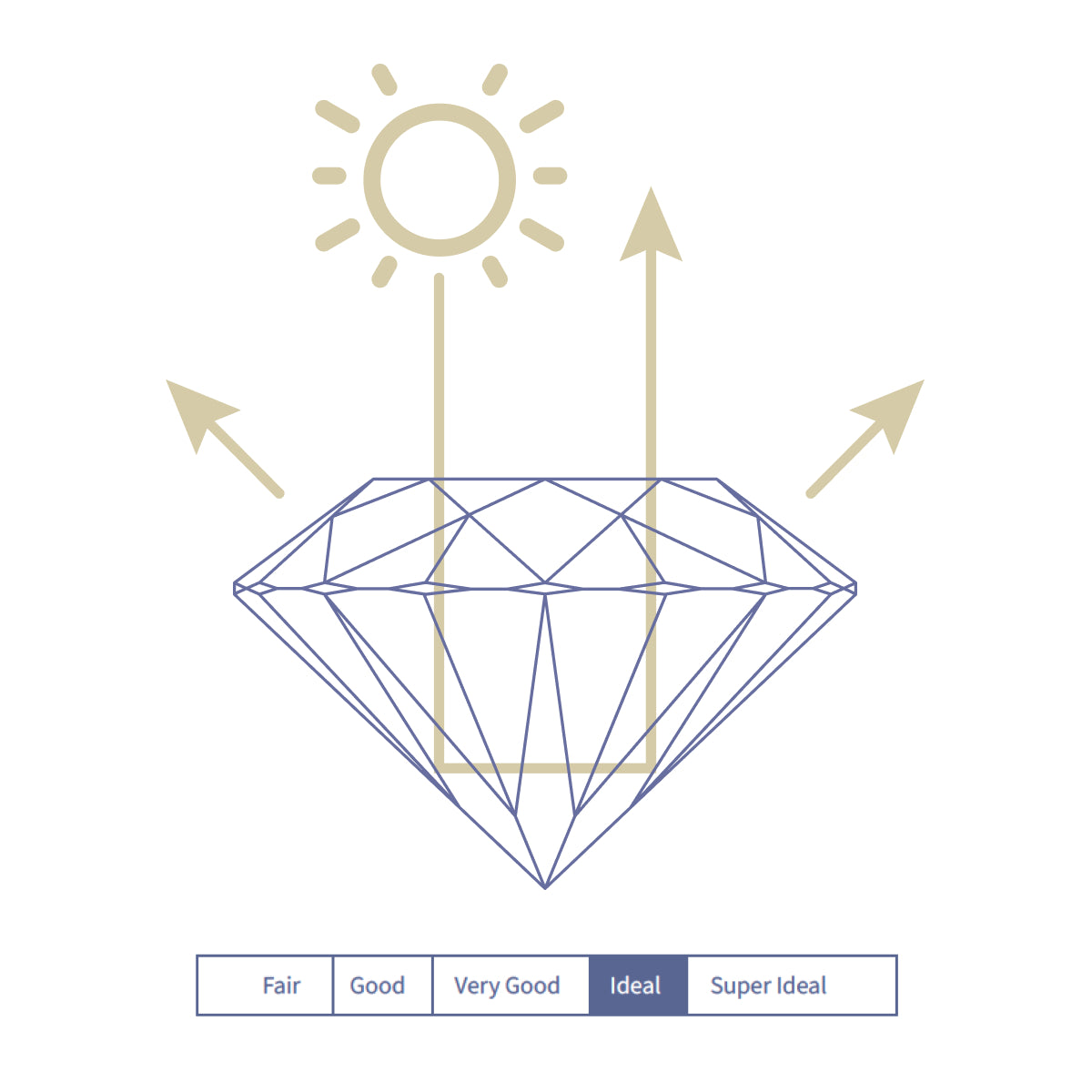 Not to be confused with the shape of the diamond, the cut impacts how a diamond’s facets interact with light, it determines its sparkle and brilliance. The quality of the cut is impacted by the polish, the proportions and symmetry. Gradings range from Super ideal and ideal to very good, good, fair and poor.
