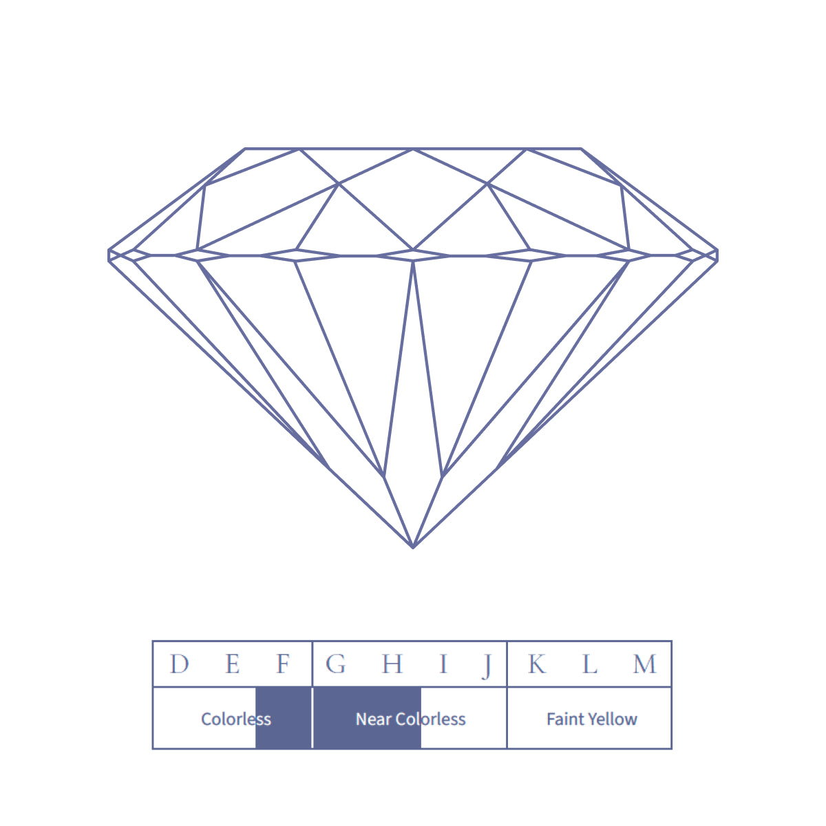 Monte Luna only accepts and works with diamonds that are colorless or near colorless to ensure the desired brilliant white color. Anything outside of these color grades can appear slightly yellow. It mostly requires a trained eye to distinguish between D, E, and F grading within the colorless category while near colorless stones can have a slight trace of color that is mostly not noticeable to the naked eye.