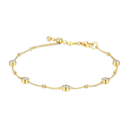 BA0218Y - Bezel Station Lab-Created Diamond Beaded Bolo Anklet