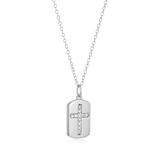 BN0215W - Cross Tag Lab-Created Diamond Pendant Necklace