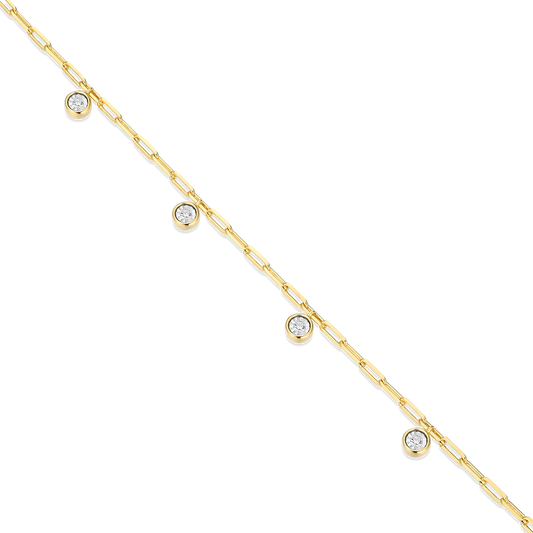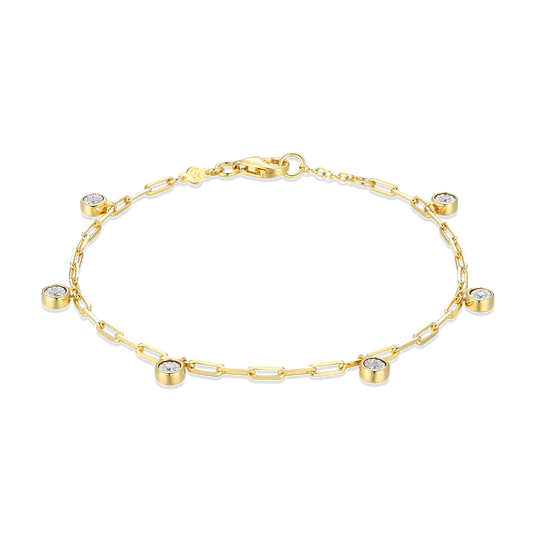 BB0217Y - Dangle Station Lab-Created Diamond Mini Paperclip Bracelet in 14K Yellow Gold-Plated Sterling Silver
