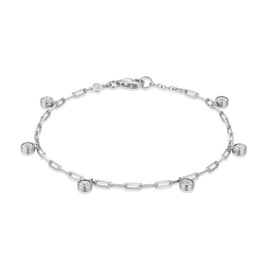 BB0217W - Dangle Station Lab-Created Diamond Mini Paperclip Bracelet