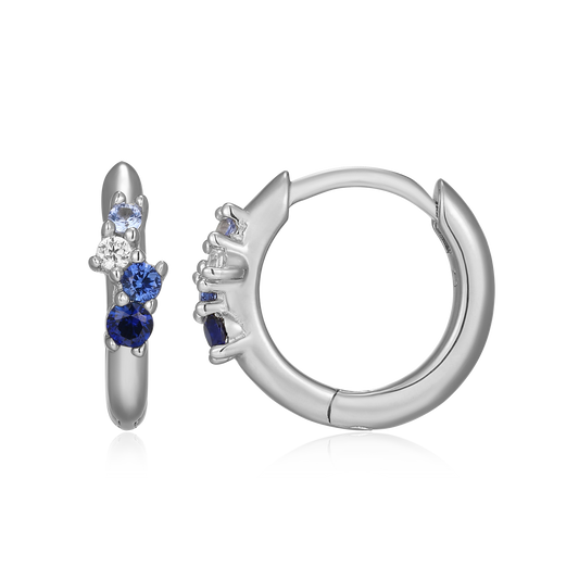 Lab-Created Sapphire Baguette & Diamond Round Cluster Ring in Rhodium-Plated Sterling Silver | M by Monte Luna