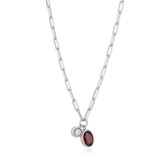BN0221W - January Birthstone Genuine Garnet & Lab-Created Diamond Mini Paperclip Necklace