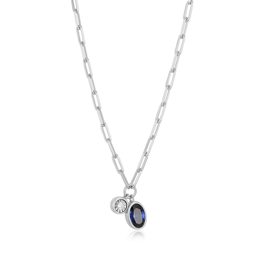 BN0229W - September Birthstone Lab-Created Sapphire & Lab-Created Diamond Mini Paperclip Necklace
