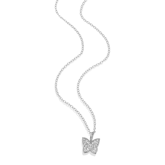 BN0035W - Pave Butterfly Lab-Created Diamond Pendant Necklace